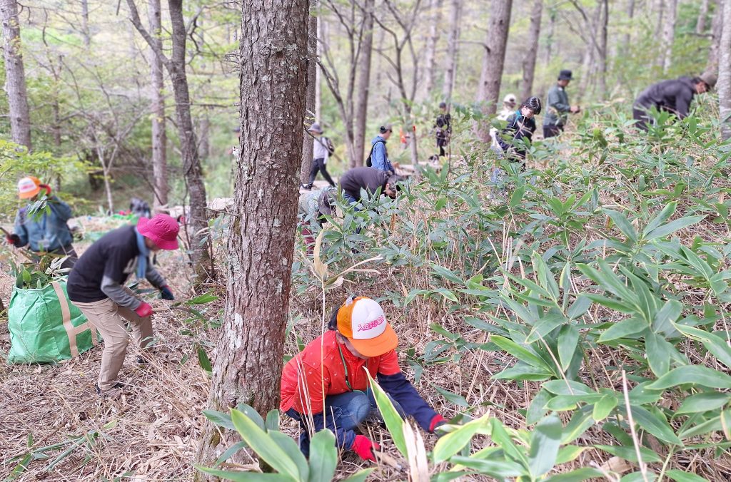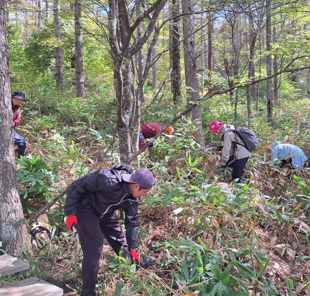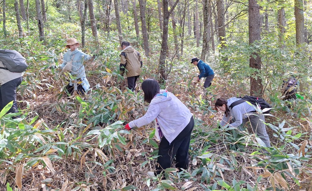 下山したら保全活動体験として、笹刈りに参加。