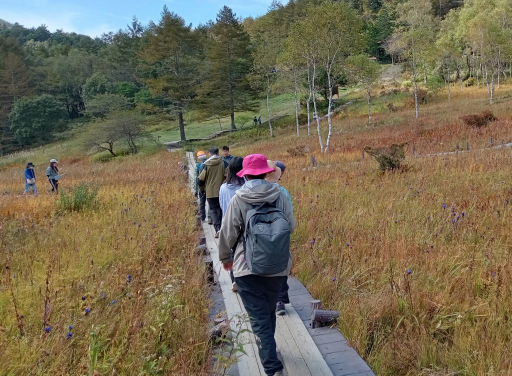 9月28日は「富士見サステナブルツアー」として入笠湿原~山頂ガイドと保全体験。