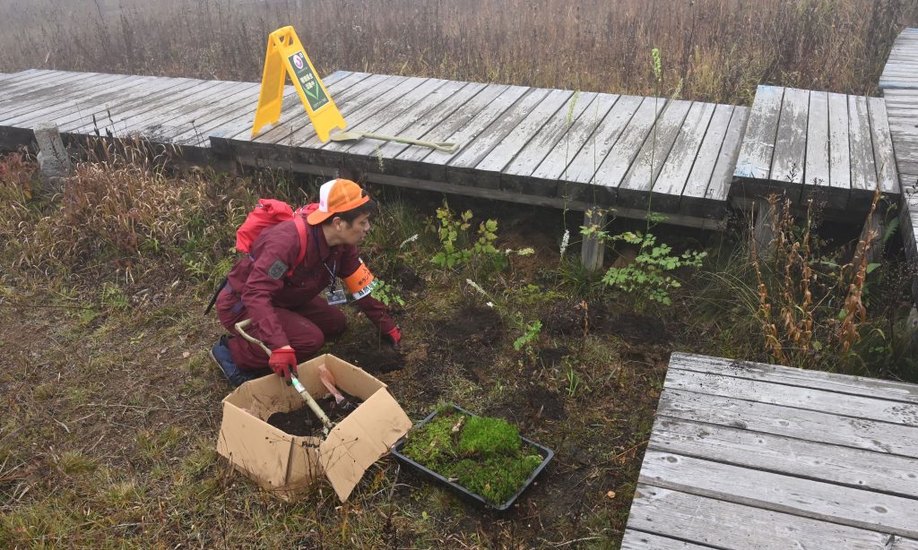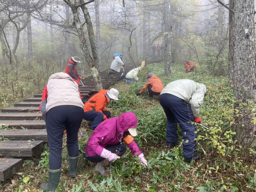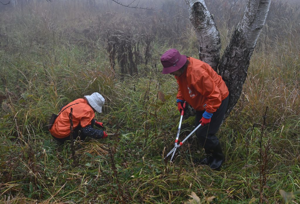 ああ、湿原内の外来種除去チームも湿原をよく知るベテランさん達ですね。今年の草紅葉、今日は見渡せないけれど近年稀にみる美しさです! これも毎年継続しての作業の賜物です。ありがとうございます。