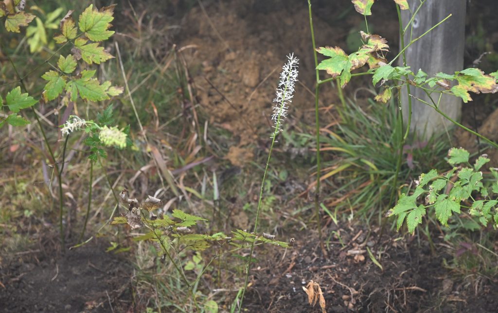 継続的な作業の結果、去年・一昨年より勢いが衰え少なく短くなった笹薮には今まで見なかったハナイカリやヨツバヒヨドリ、ハンゴンソウやカラマツソウが育ちキノコ類も顔を出しています。