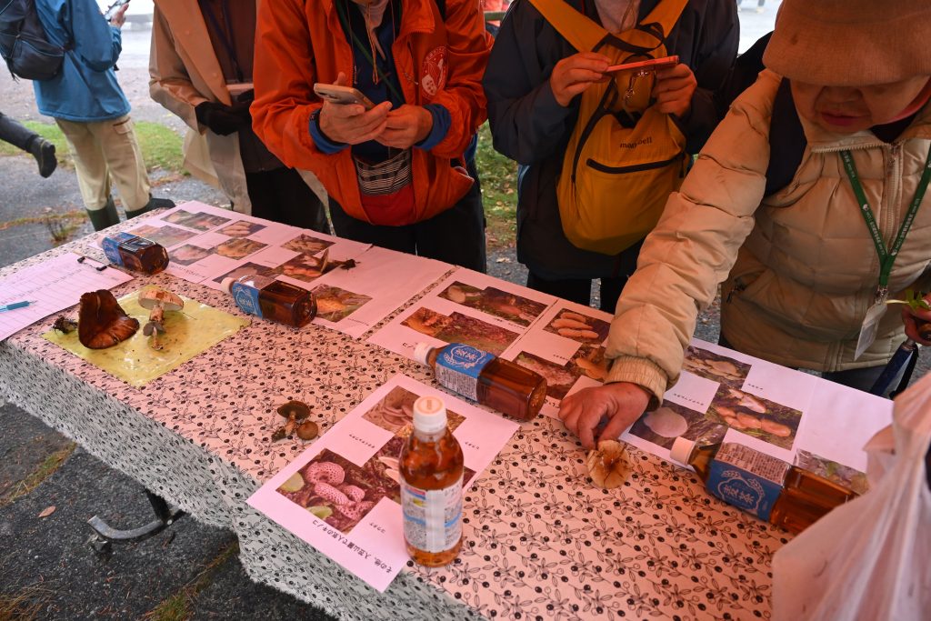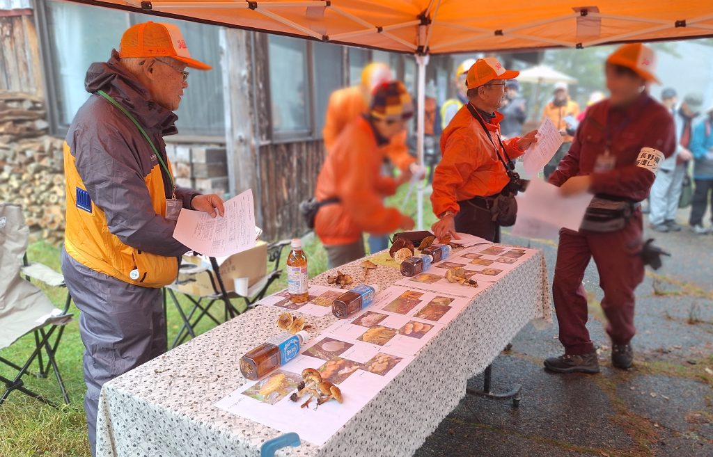 当日、湿原に生えているキノコも見本用に採取。勉強会会場も設置準備♪