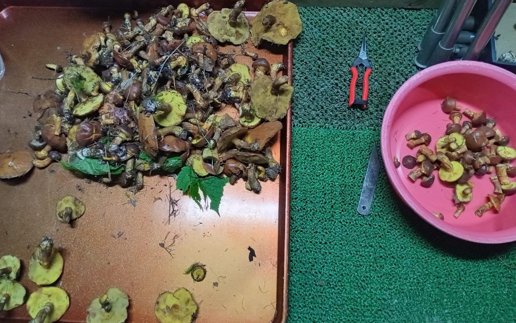 今回、第5回全体作業日の終了後には「キノコ勉強会」のアナウンスをしておりましたが「はたして当日までに十分な収穫量を確保できるのか」と心配で・・・小林顧問とは10月に入るとそれぞれ足げに山を巡回し、都度お互い確認しあってため込んできました。